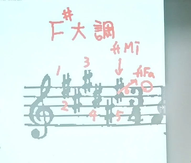 升F大調(6個升記號) : 升Mi(即為Fa)再升高半音即為升Fa