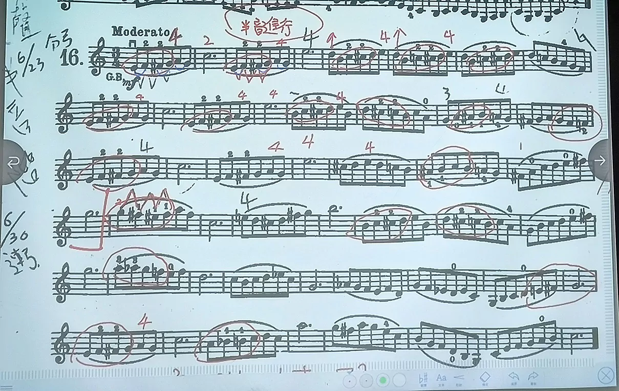 費華練習曲第16首樂譜參考 : 有許多連續半音