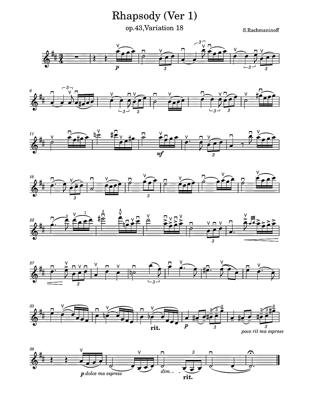 1. 發新譜 : 小提琴拋弓練習 / Rhapsody(帕格尼尼狂想曲變奏第18號) (共2頁)