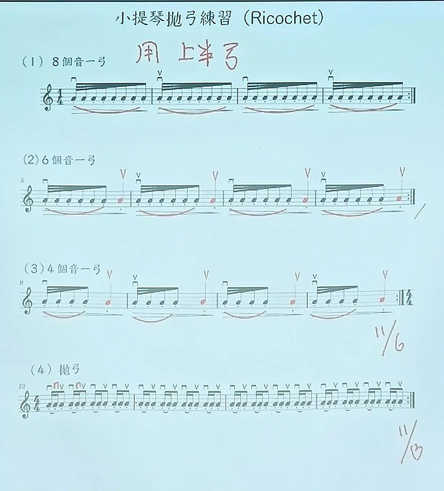 跳弓練習樂譜參考 :