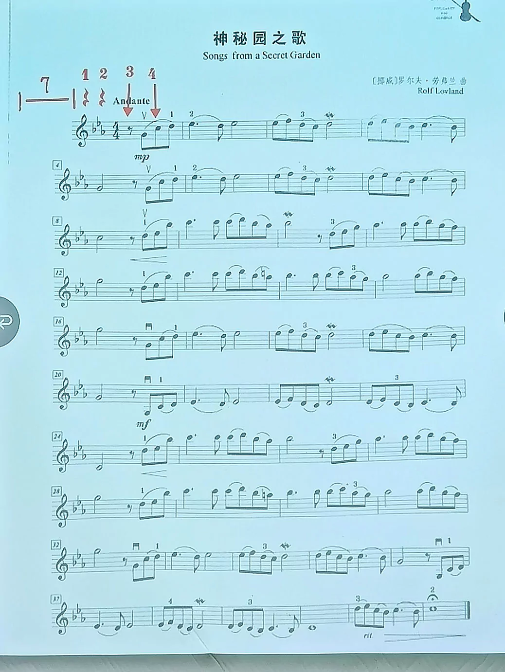 "神秘園之歌"指法參考 :