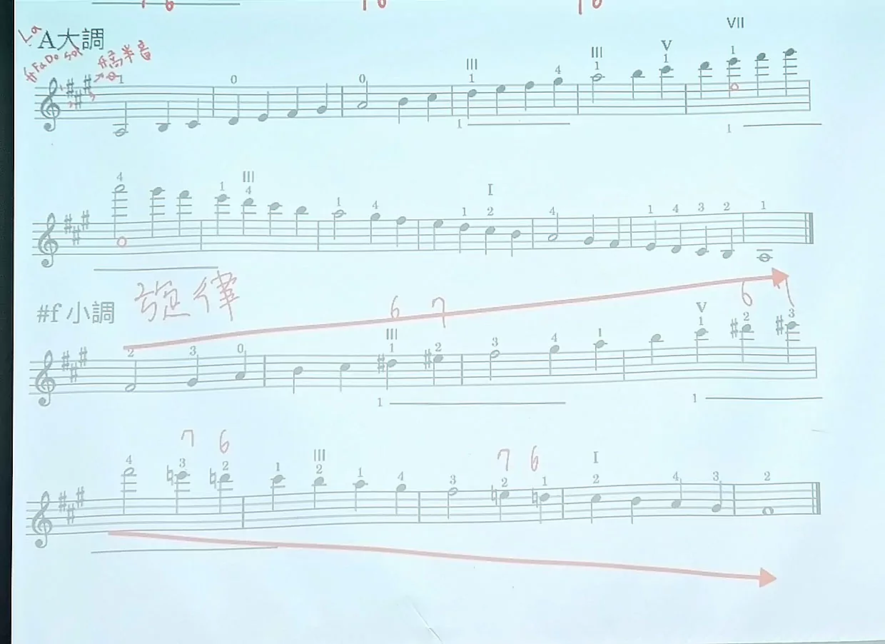 A大調 / #f小調音階練習樂譜參考 :